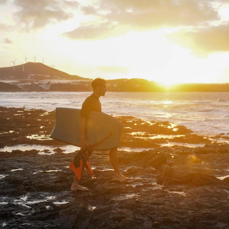 Lors de la phase de glisse ce bodyboard s’utilise en position allongée. Il est important de porter un top anti-UV manches longues ou une combinaison néoprène pour éviter les irritations sur le ventre et les bras.