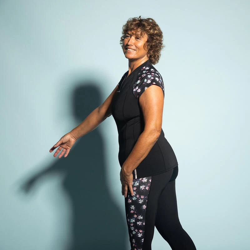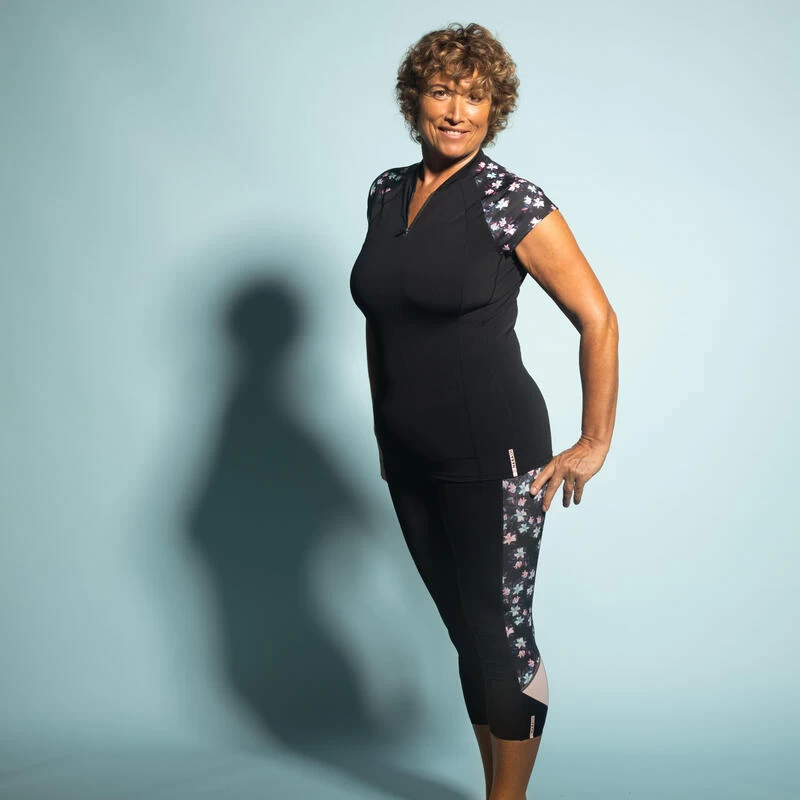 Notre équipe de conception a développé ce tee-shirt aquatique pour les femmes pratiquant l’aquagym ou aquabike.Vous souhaitez vous couvrir le haut du corps pendant votre cours d’aquabike ? Le Tee shirt Anna a une très bonne résistance au chlore et un zip au col pour faciliter l’enfilage et le désenfilage.